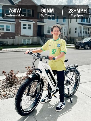 HAOQI 750W(Peak 1000W) Leopard Pro Electric Bike for Adults, 48V 20AH Removabl Battery Mountain Bike,26″ x 4.0 Fat Tire Ebike with 28MPH, 7-Speed,UL 2849 Certified