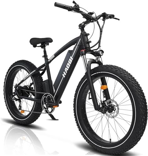HAOQI 750W(Peak 1000W) Leopard Pro Electric Bike for Adults, 48V 20AH Removabl Battery Mountain Bike,26″ x 4.0 Fat Tire Ebike with 28MPH, 7-Speed,UL 2849 Certified