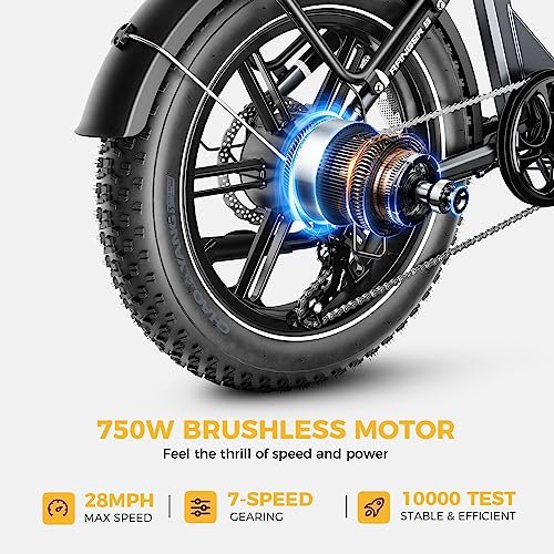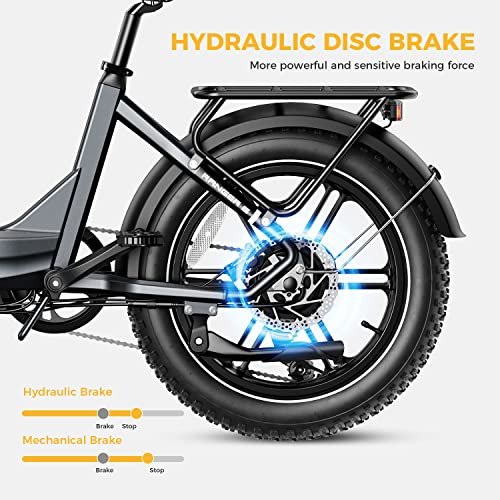 Heybike Ranger S Electric Bike for Adults, Foldable 1400W Peak Motor Ebike, 20″ x 4.0 Fat Tire Step-Thru Electric Bicycle, 48V 14.4AH Removable Battery Commuter E Bike, 7-Speed Hydraulic Fork