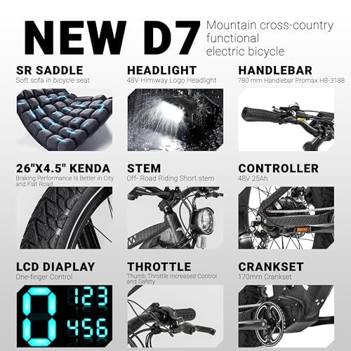 • 【Continuously Refined Comfort】Himiway’s relentless pursuit of comfort allows you to indulge in off-roading like never before. The redesigned handlebar setup is tailored to fit the demands of off-road handling, with a width extended to 780mm for daily commuting adaptability and effortless control in the wild. The new button configuration and display design make every interaction a pleasure.