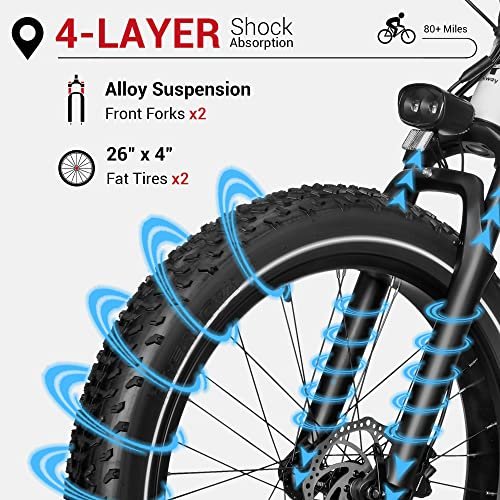 Himiway Zebra D5 26″x4″ Electric Bike, 80Miles Range 48V 20Ah Battery 750W Ebike, 400LBS Payload, 25MPH, 7 Speed