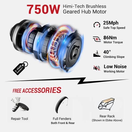 | Included Components | Himiway E-bike Full Fenders, Himiway Rear Rack, 16 in 1 Multi-Function Bicycle Repair Tool |