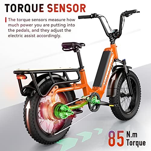 HOVSCO Electric Bike for Adults, 1000W Motor Torque Sensor Ebike 28Mph, 48V 15AH Removable Battery 60Miles Electric Cargo Bike, 20″ Fat Tire Commuter Electric Bicycle, 7-Speed Gear,450lbs Playload