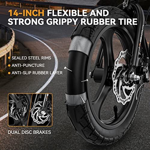 Jasion EB3 Electric Bike for Adults 21mph Folding Adults Electric Bicycles, 350W Brushless Motor, 36V 7.5Ah Battery, Center Suspension, 3 Levels Assist, 14″ Foldable ebike for Adults and Teens