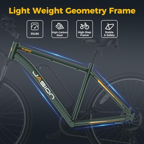 • Safety Riding: Jasion EB5 PLUS ebike for adults equipped with a series of protection devices for safe riding. The adjustable front suspension absorbs any bumps or shocks encountered on the road. The bright headlight and flashable reflector provide more visibility in dark conditions, enabling you to see and be seen. The front and rear brakes are essential for quick and safe stopping, creating a hassle-free riding experience for you
