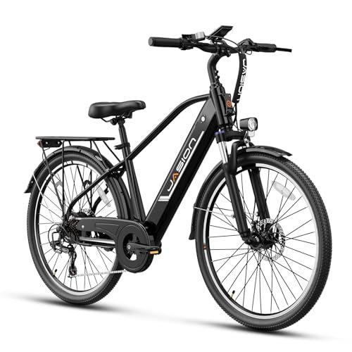 Jasion Roamer Electric Bike for Adults 1200W Peak Motor 528WH Removable Battery,up to 60miles 28MPH City Cruiser Ebike,26” Commuter E Bike, 7-Speed Gears and Front Suspension Bicycles