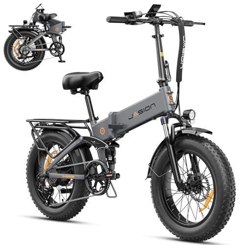 Jasion X-Hunter Electric Bike for Adults,1400W Peak Motor 30MPH Max Speed,48V 13AH Removable Battery, Full Suspension System Design,20”*4.0 Fat Tire Foldable Ebike 7-Speed Bicycles