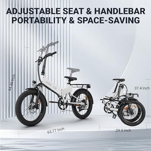 KBO K Series K1 K2 Folding Electric Bike 500W, 5 Colors K Series E Bike, Up to 45 Miles Range Electric Bike for Adults, 48V 10.4AH, 20Mph, 280lbs Payload, UL2849 Certificated Foldable Ebike