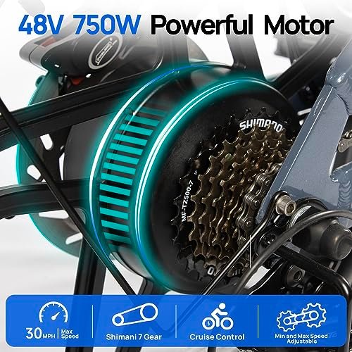 • 【POWERFUL MOTOR】:The 750W high-speed power motor will help you reach 30mph with ease. 85N·M torque makes it more adaptable to terrain. (conquer 30° inclines)Let your footsteps not only be stay in the city. Even on rainy days, the front and rear 180 mm hydraulic disc brakes show their extraodinary brake ability. (When braking, the drive power will be cut off to improve safety). Strong power and braking capabilities make you feel more free and safer while riding.