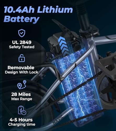 NAVIC CB6 Electric Bike for Adults, 750W Peak Power Folding Ebike, 22Mph Max Speed, 499.2Wh Removable Battery, 14″ Adults Electric Bicycle, Max 28Miles Long Range, Mini E Bikes