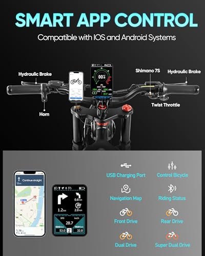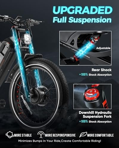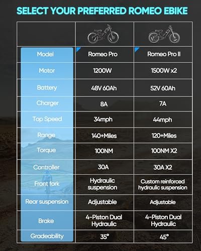 Romeo ProⅡ(2024 Newest Upgraded) 3000W Dual Motors Electric Bike for Adults, 60Ah 120Miles Long Range Electric Bicycle, 44Mph 26″*4.0 Fat Tire Full Suspension Electric Mountain Bike