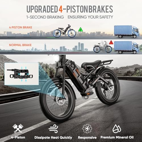 [⚙️???????????????????????????????? ???????????????????????????????????? ????????????????????????] Superior 4-piston Hydraulic Brakes with larger brake pads and rotors (203mm) for more efficient heat dissipation,provide more modulation, allowing you to better control their speed and stopping power.