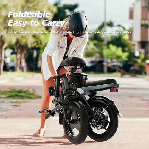 SOHAMO A3 Electric Bike for Adults, 400W Brushless Motor Foldable Mini Ebike with 22mph, 48V 12/16AH Multi-Shock Absorption 14″ Small Electric Bicycles for Road Cruiser Cargo Pedal Assist
