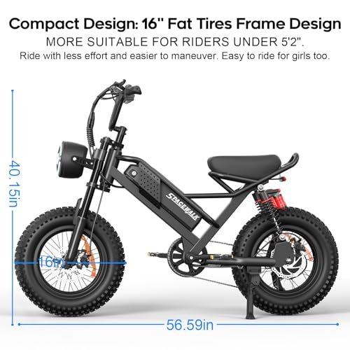 Spacewalk Small Electric Bike,16″ Fat Tire Ebike,Compact Design,More Suitable for Riders Under 5’2″, and Teenagers with 750W Motor, 21.7MPH with Removable 48V/15AH Battery,50-Miles Motorcycle