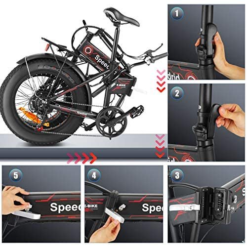 Speedrid 500W Folding Electric Bike for Adults, 20″ x 4.0″ Fat Tire Ebike with Mid Located Built-in 48V-10.4Ah (499Wh) Battery Up to 50 Miles, Front Suspension Fork and Professional 7 Speed
