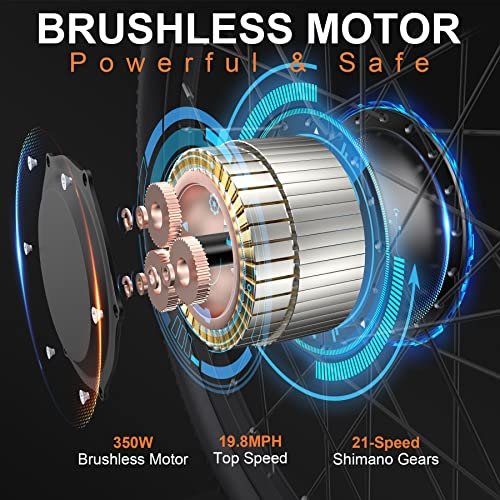 TotGuard Electric Bike, Electric Bike for Adults, 26″ Ebike 500W Peak Motor, 19.8MPH Electric Mountain Bike with 374.4WH Removable Battery, Suspension Fork, 21 Speed Gears
