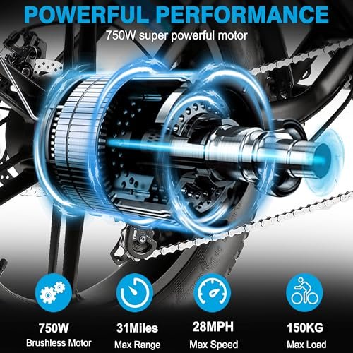 V20 3.0 Electric Bike Powerful 1000W Motor, 20” Fat Tire Ebikes, 48V 15.6AH Battery, 28MPH Speed, Double Suspension & Disc Brakes