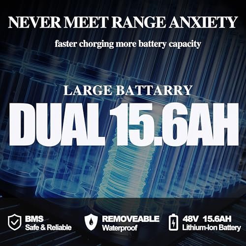 • ????【Large Capacity & detachable Battery】Stylish and artistic, the 48V 15Ah cells lithium-ion battery matches perfectly with the down tube of electric mountain bike and comes with a dual anti-theft design: key and push button locking battery. The waterproof battery of electric bike is not only large capacity and long lasting, but it’s also removable, convenient to take home or office for charging. It just takes about 6-8 hours to get fully charged.