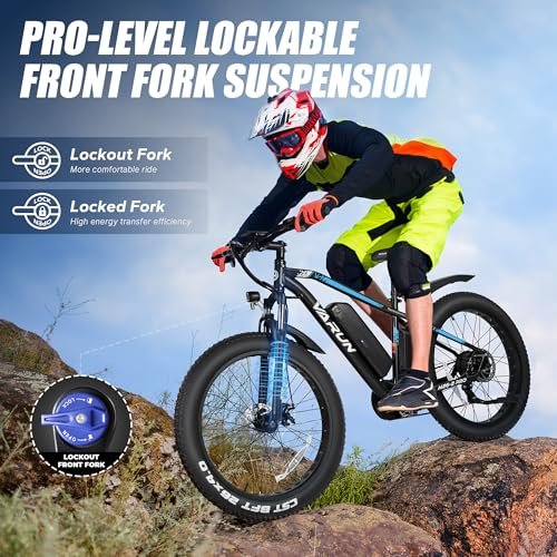 VARUN E Bikes for Men – Peak 750W Ebikes for Adults – Fat Tire Electric Bike Up to 25MPH 60+ Miles with 48V 13AH Removable Battery – 26″ Electric Mountain Bike Features 7-Speed, Lockable Suspension