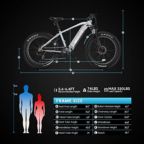 Be the first to review “VELOWAVE Electric Bike for Adults 750W BAFANG Motor Peak 1000 28MPH Mountain Ebike 48V 15Ah Removable LG Cells Battery 26” Fat Tire E Bike Shimano 7-Speed (Step-Over, Silver)” Cancel reply