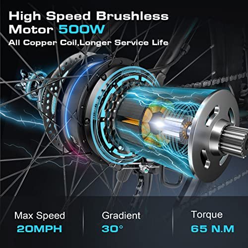Vivi Electric Bike, 27.5″ Electric Bike for Adults 500W(Peak 750W) Ebike 21.7MPH Electric Mountain Bike with 48V 499.2WH Battery, Up to 50 Miles, Cruise Control, 21 Speed Adult Electric Bicycles
