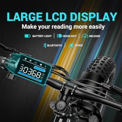 Electric Bike for Adults,Fat Tire Electric Bike,Mountain Ebike,Commuter Ebike,Peak 1300W,48V 15Ah Removable Battery, 60Miles Range 28Mph,7-Speed Gear Beach Electric Bike